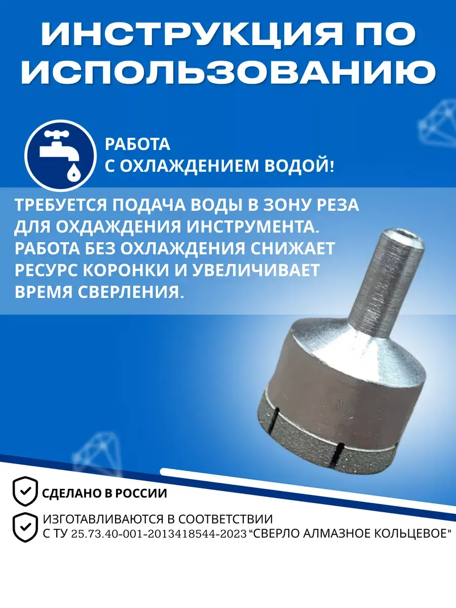 Обеспечьте вашему проекту высочайшую точность и эффективность с алмазным сверлом. Сверло обладает высокой точностью благодаря специальному алмазному покрытию, что предотвращает сколы и трещины при сверлении. Его универсальность в применении позволяет работать с различными материалами - от керамики и стекла до камня и бетона. Долговечное алмазное покрытие гарантирует длительный срок службы сверла даже при интенсивном использовании. Специальная конструкция обеспечивает быстрое и эффективное сверление, что позволяет вам экономить время и выполнить работу без лишних задержек. Повысьте качество своей работы с помощью этого надежного и профессионального инструмента!